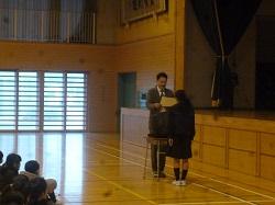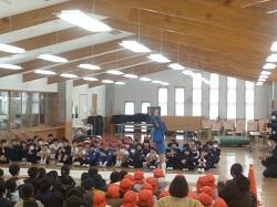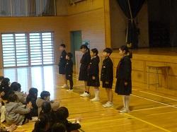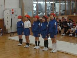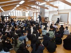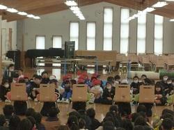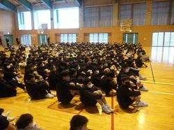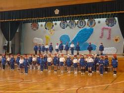 全校児童は、時間前に静かに体育館に集合し、整列していました。