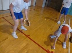 2人でキャッチボールをしながら、相手にとりやすく投げる・落とさないでしっかり受ける練