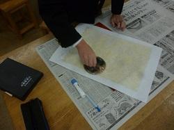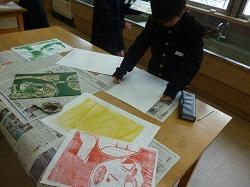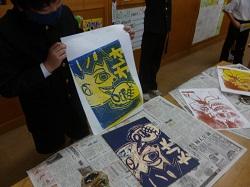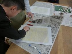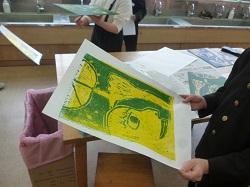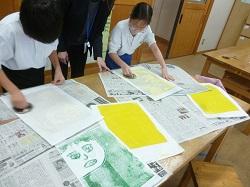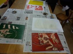 丁寧に彫り進めて、2色刷りにチャレンジをしました。