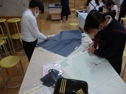 5年生は、家庭科の時間にエプロンづくりをしています。