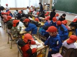 その後、1年生の教室に入り鉛筆を手に模様や絵をなぞるプリントに取り組んでいました。