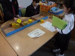 図書委員会の発案で、借りた児童にはさいころのチャレンジができ、自分の希望の数字が