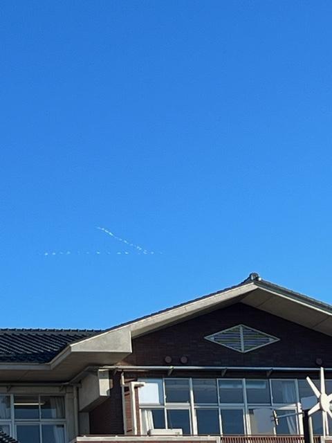 そんな朝、北の空を見上げるとV字型になって飛んでいる鶴の群れを見つけました。