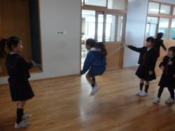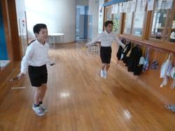 休み時間になると子供たちは、縄跳びにチャレンジ。