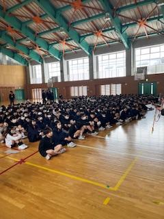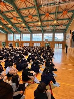本日の午前中、来年度入学してくる新1年生を招いてようこそ集会を行いました。