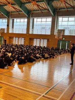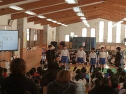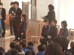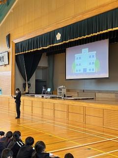 朝休み時間に、2月の学校集会を行いました。