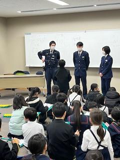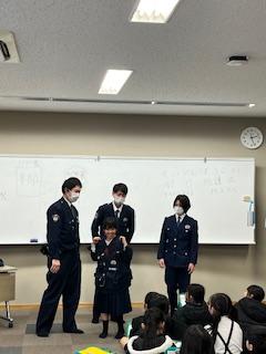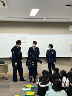 4日(火)の5.6時間目に、3年生が社会科の学習で警察署の皆さんからお話をしていただきました。