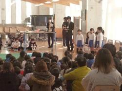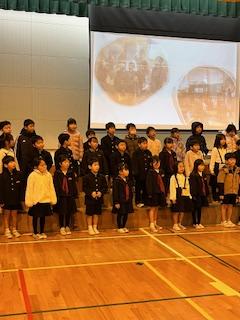 校歌斉唱の後、学校長からは「zero」という本の朗読。表彰式の後、生活の話などありました。