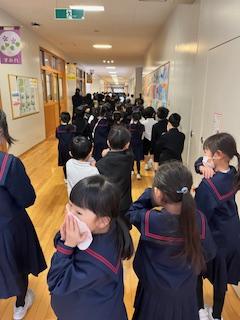 今日の長休み時間に避難訓練を行いました。