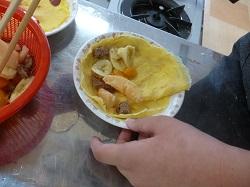 クレープ粉に卵と牛乳を混ぜて、薄く焼いた生地に生クリームや果物などを