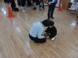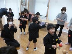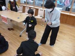 今日の2・3時間目に、1年生が昔遊び体験をしました。