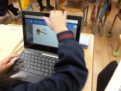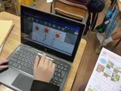 タブレットのオクリンクを使用して、言葉や絵を入れながら「昆虫・音・日なたと日かげ