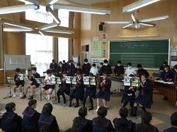 6年2組の皆さんが、音楽の授業で取り組んでいた合奏を聞かせてくれました。