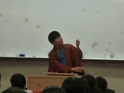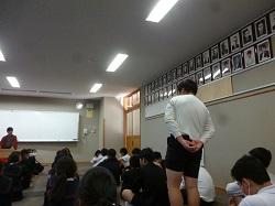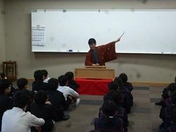 今日は6年生を前に、方気さんは落語の歴史について説明し、江戸時代に安楽庵策伝という僧侶が説法のなかに笑いの要素を取り入れたことから始まったと教えてくださいました。