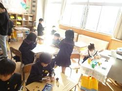 1年生が生活科の時間に『おもちゃランド』の準備をしていました。