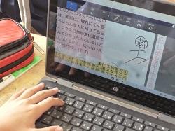 最近は、タブレットで自分の考えや思いを表現することも行っています。