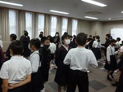 5年生は自分たちで話し合い目標を決めたようです。あいさつ運動後にみんなで集まり、