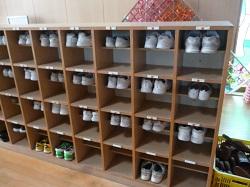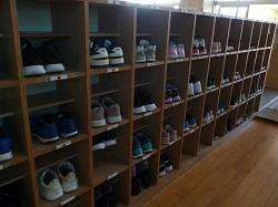 両手で踵を揃えて入れる子や傘立てのかさを揃え直す高学年もいます。