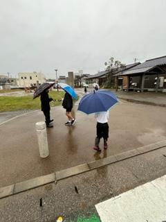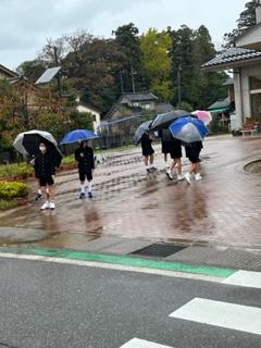 冷たい雨の朝でもみんな笑顔であいさつ運動