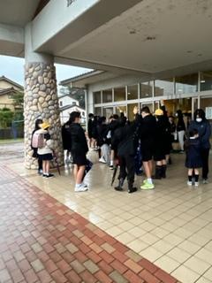 たくさんの子ども達が児童玄関前に出てあいさつ運動をしていました。