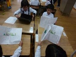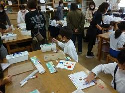 自分の作品を丁寧にまとめる5年生。