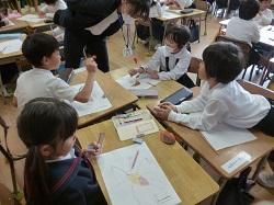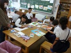 1年生は国語の授業です。グループになって、音読の練習をしていました。登場人物になり