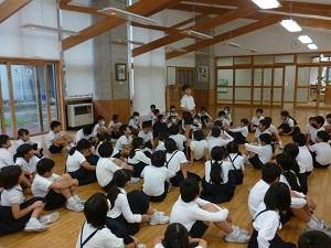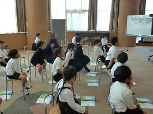 1年生の音楽の授業では、「ひと」と「やまびこ」になり同じ言葉を繰り返す授業でした。