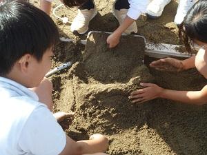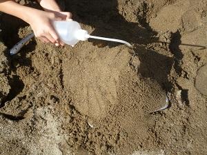 流れる水には、「浸食」「運搬」「堆積」の3つの働きがあることに気付くことが、ねらいと