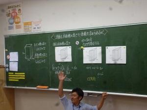 6年生が算数の時間に「三角柱」の体積を求めていました。