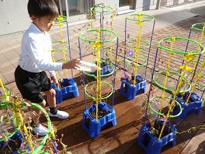 「きれいだね」と声をかけると「アサガオ大好きや」と返事が返ってきました。