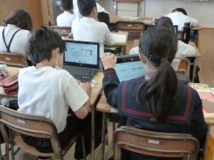 今日は、一台端末のジャムボードを使い、ごんの心情の変化を一人一人がまとめていました。