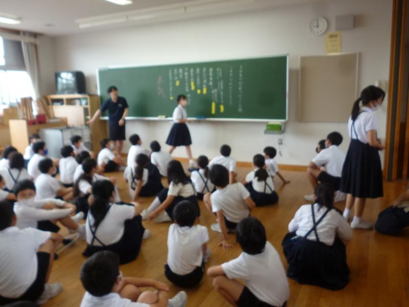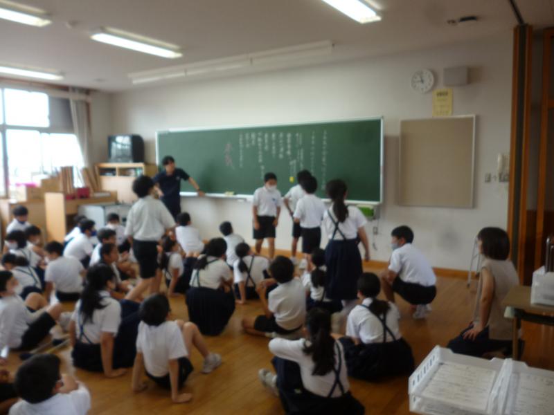 6年生が宿泊体験学習に出かけたことをきっかけに、5年生も自主的にクラスに訪問して一緒に