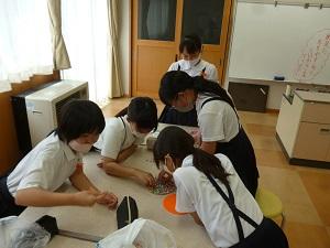 6年生児童が、150周年記念事業の一環としてフラッグ作りをしています。