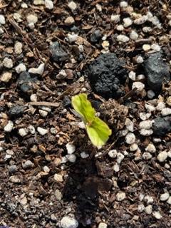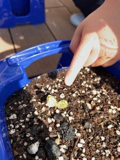 先週、1年生が撒いたアサガオの種から芽が出ました。