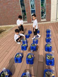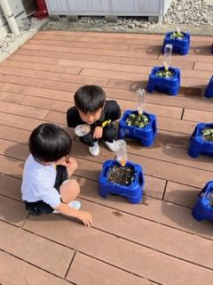 「早く自分のも出てほしいな。」と言いながら水やりをしていました。