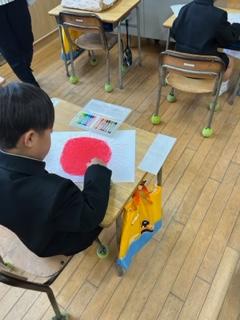 1年生が、図工の時間に「おひさま」を描きました。