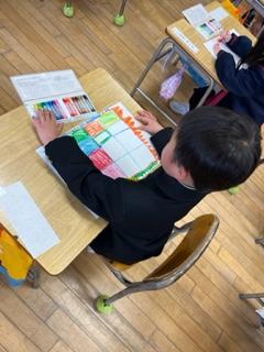 今日は、2つのグループが合同で自分の名札をつくりました。