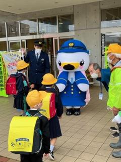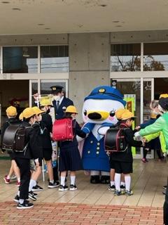 今朝、津幡小学校の児童玄関に津幡警察署の白鳥係長が来校しました。