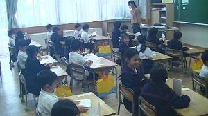 1年生は、道路の正しい歩き方や横断歩道の渡り方。