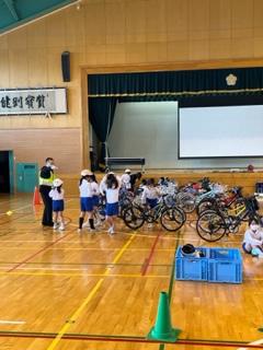 4年生は、自転車の安全な乗り方を警察署の方に教えていただきました。