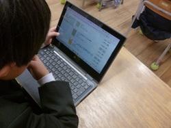 今日の朝読書で、子供たちは津幡町デジタルライブラリーを活用しました。