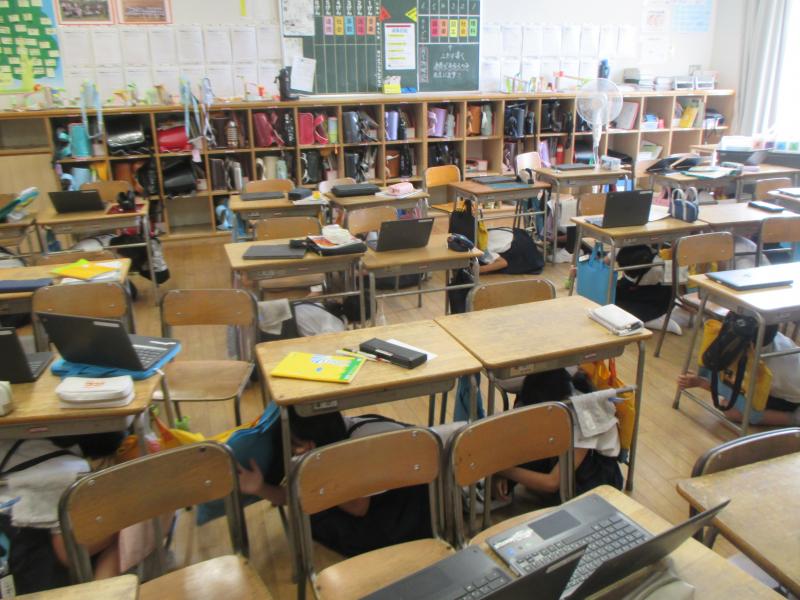 今日は、子供たちの防災意識の更なる向上を図るため、「シェイクアウトいしかわ(県民一斉防災訓練)」を実施しました。