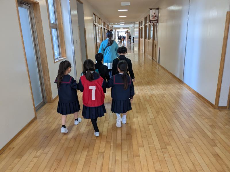 今日は、1年生が学校探検をしました。