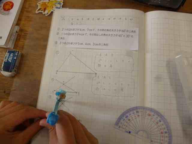 5年生の算数の授業では、子どもたちが「合同な三角形の作図方法」について熱心に取り組んでいました。