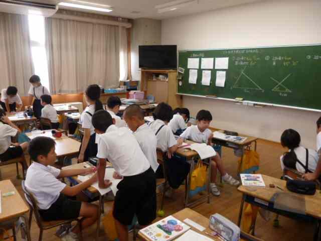 角や辺の長さに着目しながら、みんなで意見を出し合い、友達同士で確かめ合いながら学び合う姿が素敵でした。さすが5年生です。