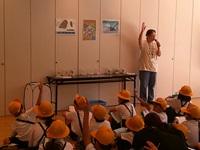町の職員の方から、AIオンデマンドバス「のるーと津幡」のお話を聞いたり、バスに関するクイズに挑戦したりしました。クイズでは「バスのナンバープレートの数字は?」「バスのボディカラーは津幡町の何をイメージしている?」といった問題が出され、子どもたちは楽しく正解を探していました。