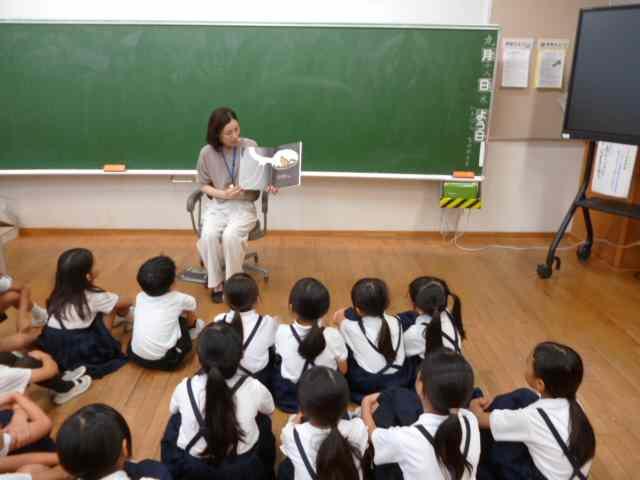 また、図書ボランティアの皆さんによる読み聞かせでは、子どもたちは本の世界に引き込まれていました。ご協力いただいたボランティアの皆様、いつも本当にありがとうございます。2学期もどうぞよろしくお願いいたします。