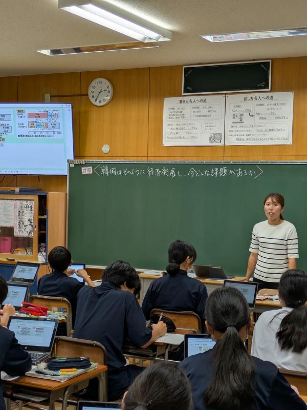 本日(10月8日)、河北郡市教育課程研究会が各中学校で行われました。これは、河北郡市内の先生方が、他校の先生方の授業を見て学び合う時間になります。津幡南中学校は1年2組・3組、3年2組・4組が残って授業を行いました。その他のクラスの生徒は午後からフリーです。部活もありません。帰る様子はいつも以上に笑顔満載でした。
