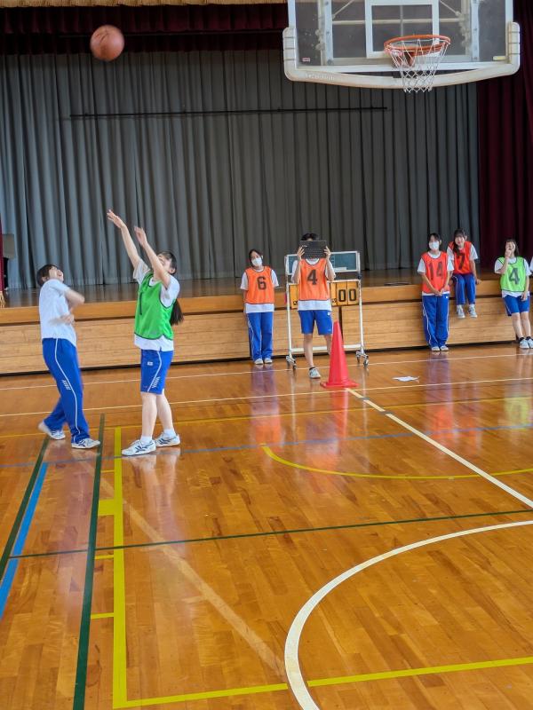 現在、保健体育の授業ではバスケットボールを行っています。バスケットボールとは、5人ずつのチームが相手チームのバスケットにボールをシュートして得点を争うスポーツです。一見わかりやすそうなルールの中にも様々な制約があり、またコートの中を常に走り回っているハードなスポーツです。わずか5分のゲームでもへとへとになります。パスをつないで、いいところまでいくのですが、なかなかシュートが入りません。なんとももどかしい競技です。けれどみんな楽しそうです。汗だくになっています。それでいいんです。
