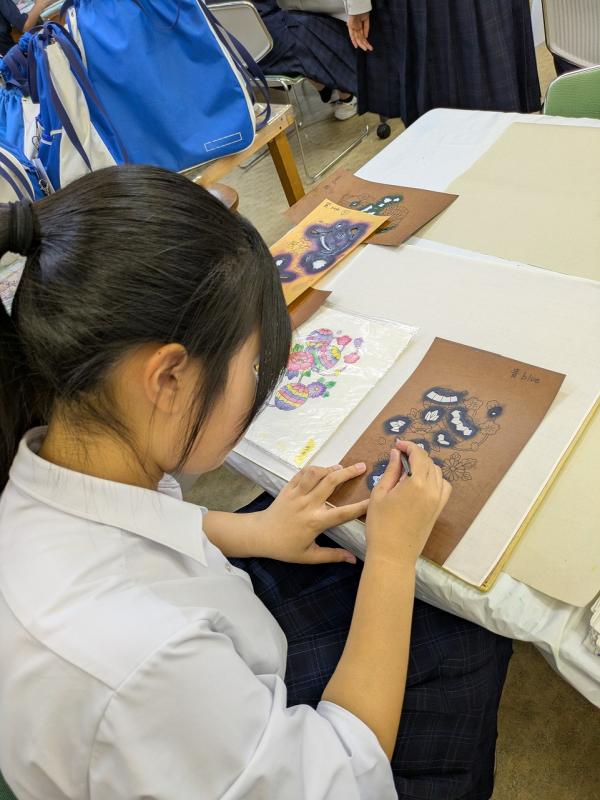 2025年10月17日 12時31分今、2年生の美術では「切り絵」制作に取り組んでいます。デザインカッター・糊・定規などを駆使して細かい作業に没頭しています。さすがに集中力を必要とするため、作業中はとても静かです。びっくりするぐらいシーンとしています。こういった作業がとても好きな生徒。手先が器用な生徒。作品に思いが込められていて、みんなの個性があふれ出ています。完成品が楽しみです。